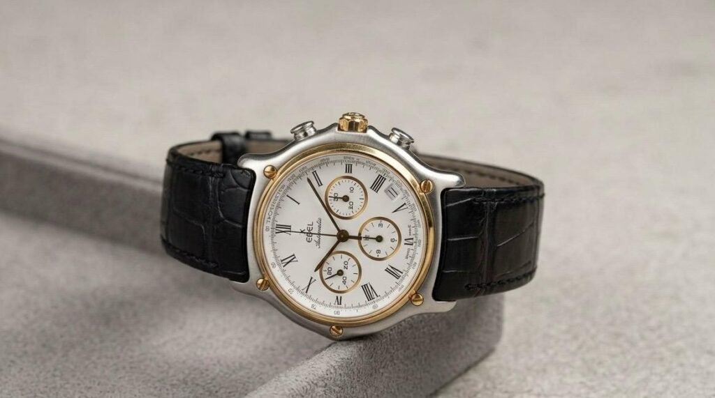 - L’Ebel Chrono-Sport : Un choix d’esthète. Ebel a logé le El Primero (calibre 134) dans une robe d’une élégance rare, popularisée par les icônes de la pop-culture des années 90.